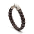 Esta pulsera de cuero marrón trenzado te atrapará por su carisma y su fuerza. Además, la cabeza de serpiente de plata con el logo de JEN como protagonista le acaba de dar el toque único que estabas buscando.